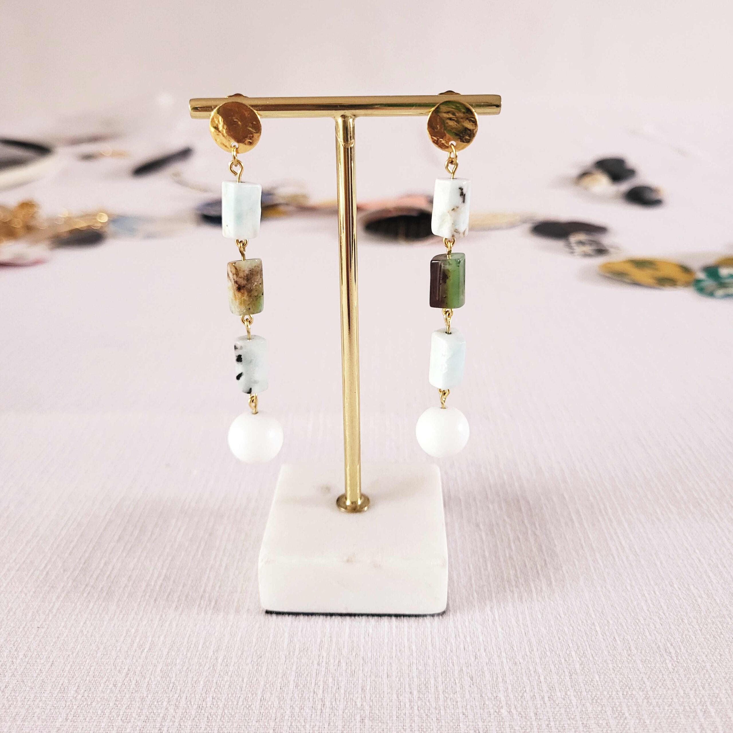 Boucles d'oreilles CLARA larimar longue pres