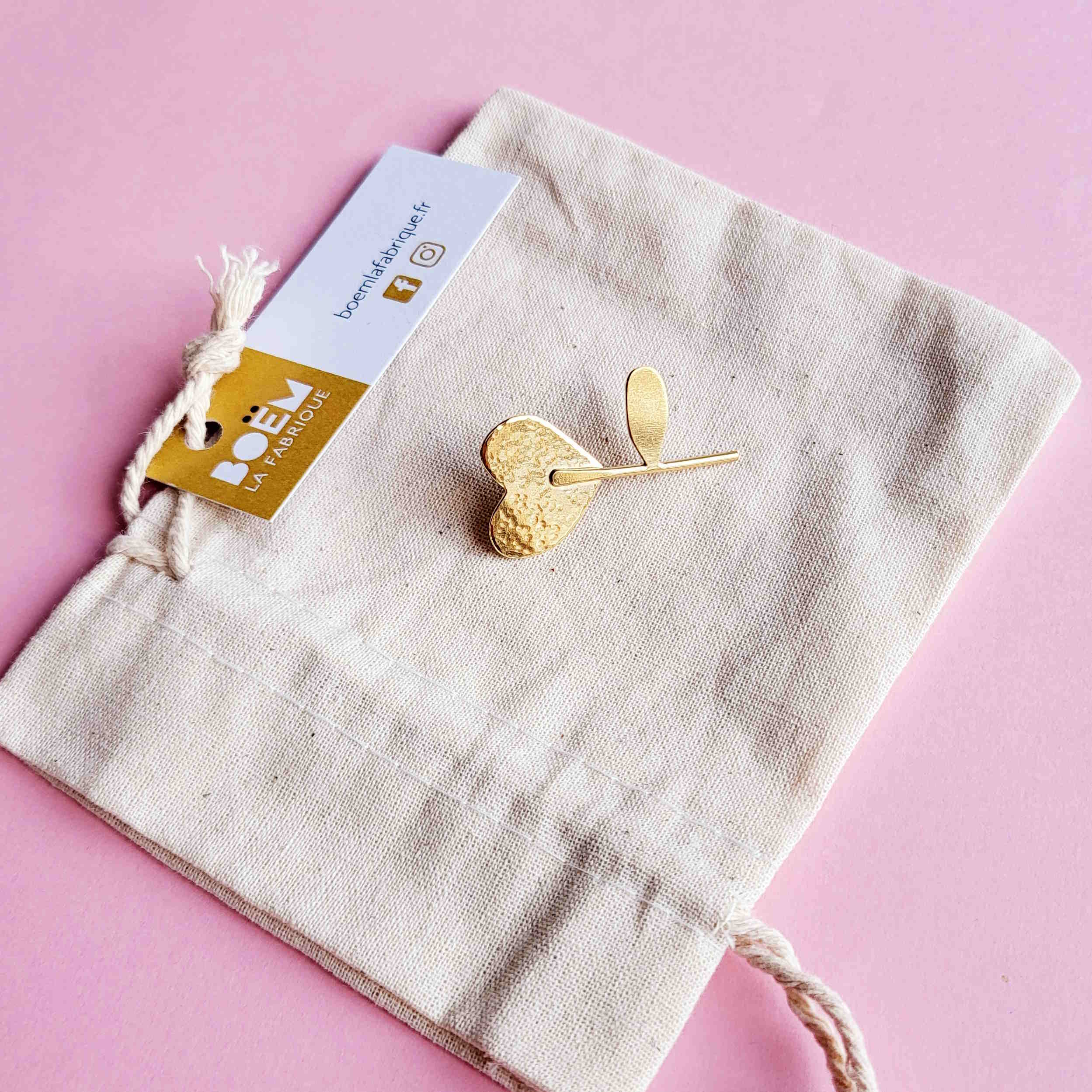 Broche FLOWER IN LOVE finition martelée pochette